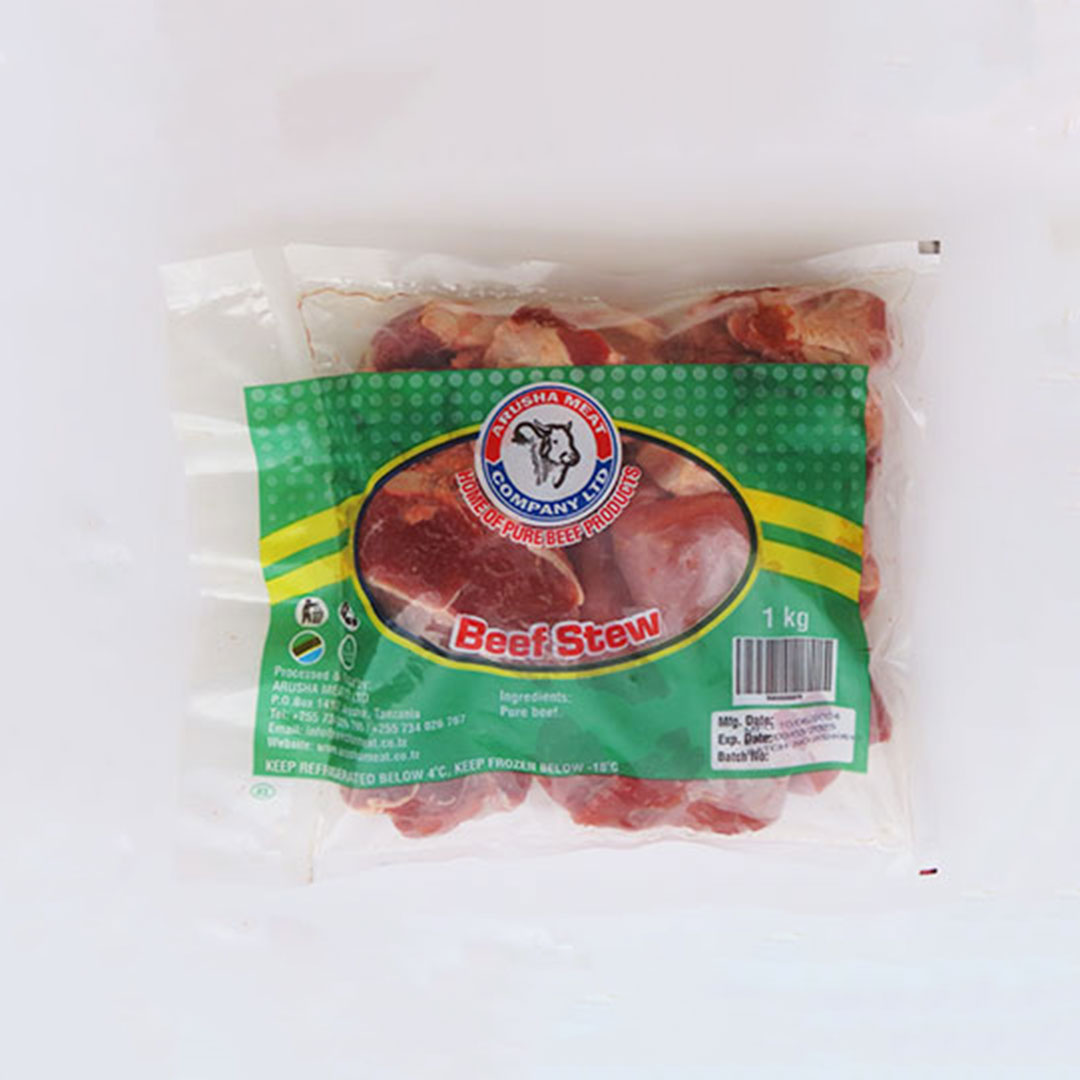 is made from cuts of beef with lots of tough connective tissue, namely chuck and/or round. The name “Stew” originates from a method of cooking where small pieces of meat are simmered in water or other liquid until its tender.